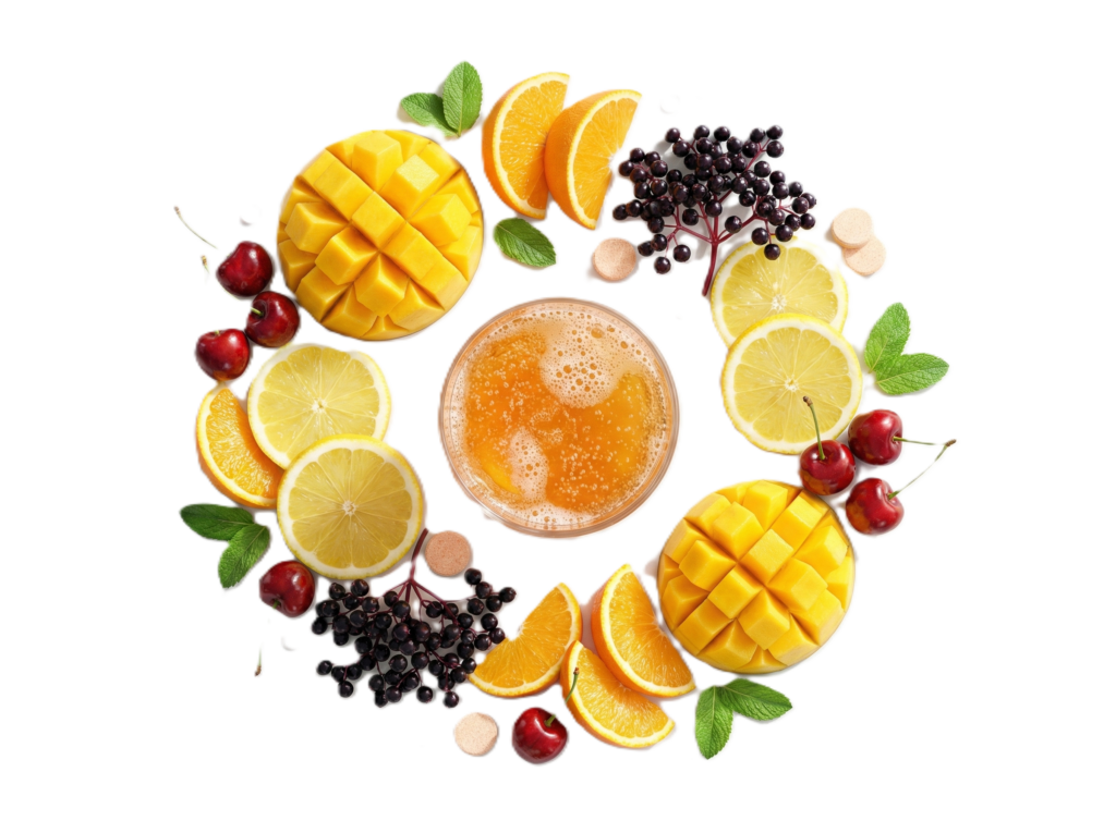 Effervescent fruit tablets designed to fit easily into your everyday routine.